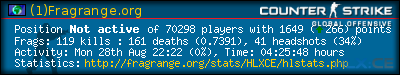 | 3 | Fragrange.org | 0d 02:32:43h | 2017-08-28 16:43:52 | 68 | 79 | 0.86 | 20 | 0.29 | 0 | 0.0% |