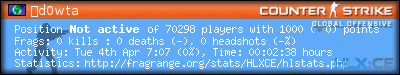 | 1 | ッd0wta | 0d 00:02:17h | 2017-04-04 05:26:30 | 0 | 0 | 0.00 | 0 | - | 0 | 0.0% |