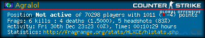 | 1 | Agralol | 0d 00:03:53h | 2016-12-30 20:36:03 | 1 | 3 | 0.33 | 0 | 0.00 | 0 | 0.0% |