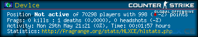 | Kills per Death: | 0.0000 (-*) | |