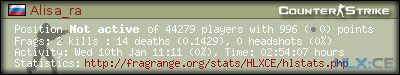 | 1 | Alisa_ra | 0d 02:50:55h | 2018-01-10 11:41:47 | 2 | 14 | 0.14 | 0 | 0.00 | 1 | 13.5% |